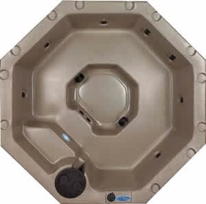 The Evolution is a octagonal hard shell hot tub but still portable enough for hire, being approx 1790mm x 1790mm x 750mm it will fit through the average gateway. Seating 5/6 adults and boasting 11 hydrotherapy jets, LED lighting and a 2hp 2 speed pump.