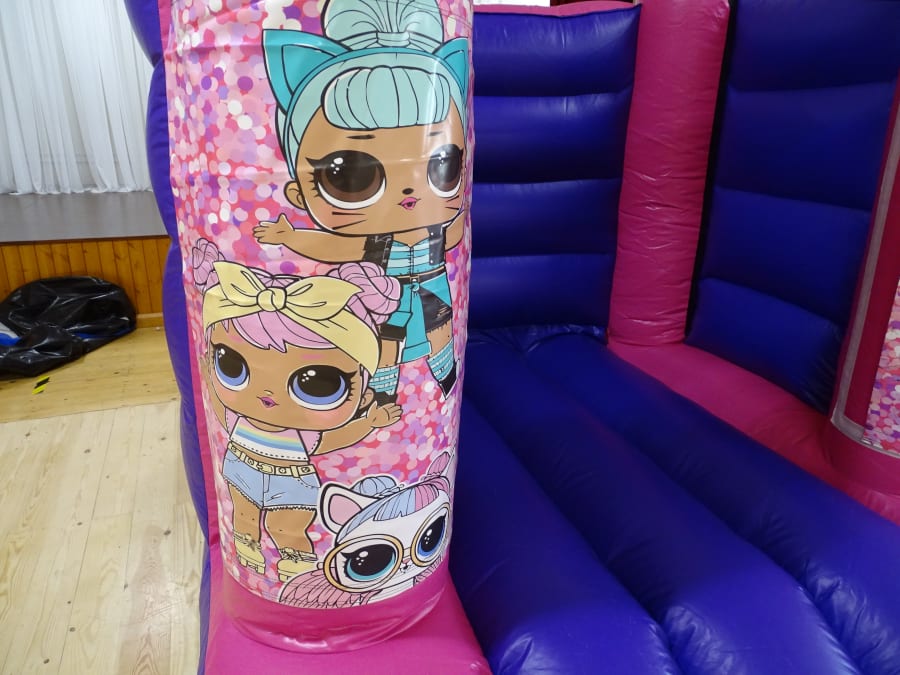 Lol Surprise Mini Bouncy Castle ...Best value Hire . A great little bouncy castle. Perfect for a small party of friends..This castle is perfect when space in a premium in garden. This castle can be used indoors at home in lounge / conservatory ..size 6ft x 6ft x 6.5 ft so will fit almost anywhere. Great for a after school treat or a small summer bbq with a few close friends. Guaranteed to fit in any venue indoors.. Good for a christening or wedding / a good add on to your party with our soft play packages too.