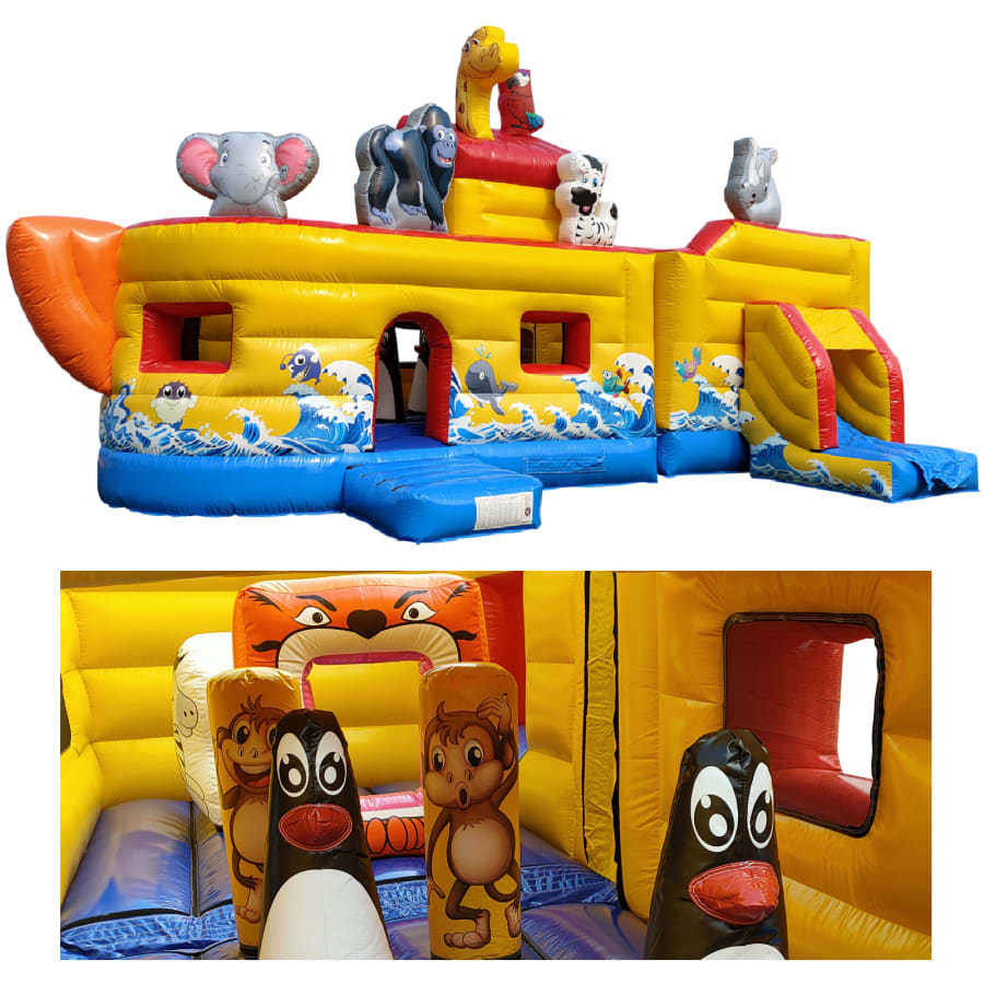 The inflatable Noah's Arc bouncer is perfect for entertaining a party of around 25 people (not all at once of course) and is a really good castle choice if you're planning a gala or fete, large garden party hire where every age range needs to be catered for.