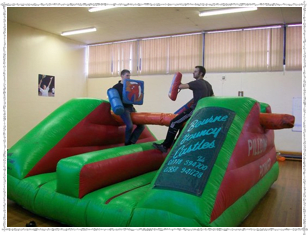 POLE JOUST ...2 Player game ..adults and children . great summer evening hire , perfect for schools ,summer fairs, private hire . Each have a shield and joust stick . . let the battle begin ...inside/outdoor hire . 15x15x9 . Classic traditional game ..Great for all the family young and old. Don't worry nice soft inflatable landing when you fall off. Can also be used on a inside venue too.