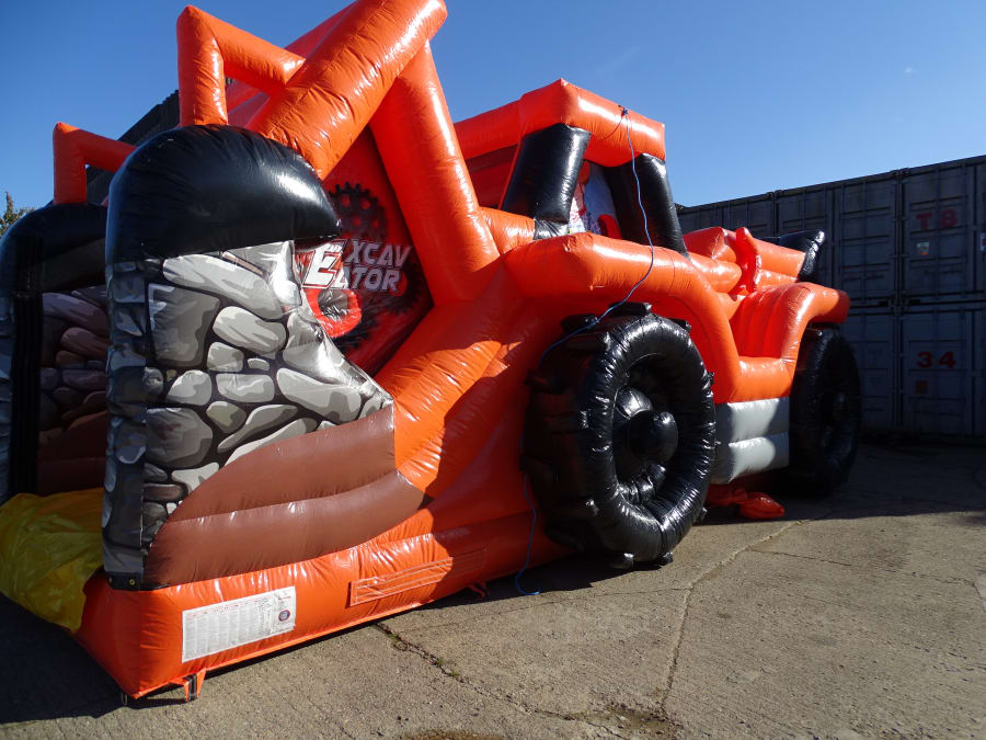 Digger Assault Course ..ITS MASSIVE ..30FT LONG !! ..Digger assault course with jump biff bash and slide out the back .. NOW IN STOCK A real hit ..wheels are bigger than me over 6 ft high. Photo dont do this justice as to how big this really is ...
