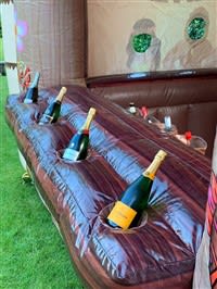 Looking to add a touch of fun and excitement to your next outdoor event or garden party? Meet "The Tiki Bar" - a 9 x 13 x 11ft inflatable bar that is sure to be the highlight of your gathering! This modern twist on a classic wooden bar is perfect for hosting your own bar for the day, whether it's for the adults or the kids.