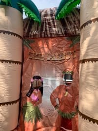 The Tiki Bar features room for this inflatable to be used as a prop or a bar area. To the left the bar is a sheet selfie prop for photo too..