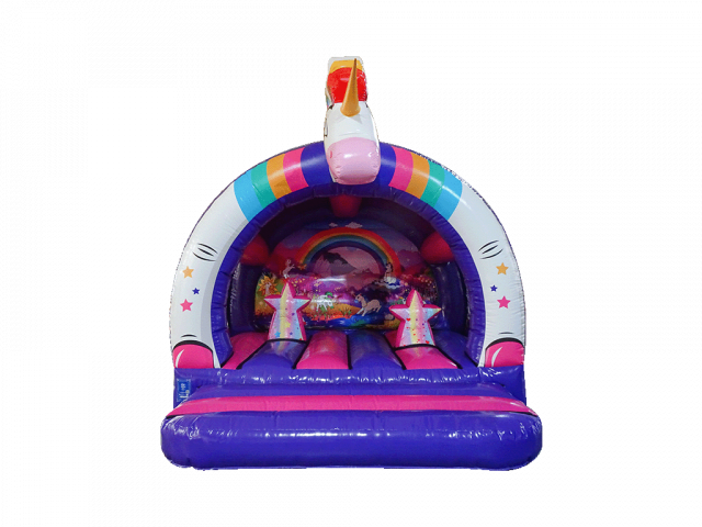 Unicorn Activity Bouncer 3D...13 FT X 13FT X 12FT HIGH .. A exceptional new 3D Bouncer...Fantastic colours...Its a pretty bouncy castle with rounded corners and netted sides and fantastic three dimensional biff- bashers .On top of the arch we have a stunning 3D heart provide an even greater wow factor. Perfect for any party can be used indoor *if hall big enough or outdoor garden hire ..this will keep any little princess happy ...Perfect for 15 kids / max age 12 years . ..Comes with a shower cover just in case. Booking early advisable..