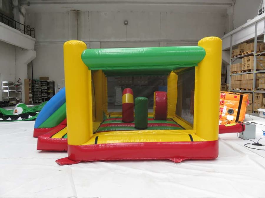 Play Combi Castle with Slide ....A great bouncy castle hire ...Bouncy area , Biff Bash , Play hoop , Slide . all in one hire ..Ticking all the boxes, good choice for a young family, netted sides for easy viewing. You know the kids will love this combi castle..