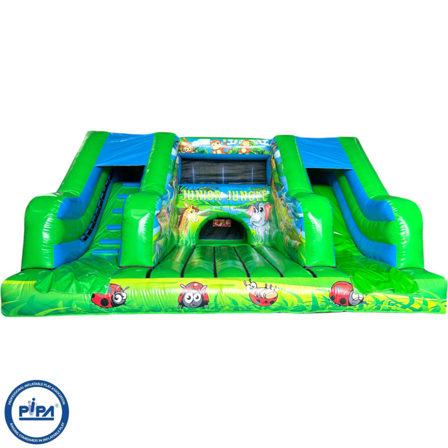 The junior play zone is a self contained unit compromising of a bouncing area, multiple biff and bash posts and solid foam block steps enabling it to be used by all ages. a crawl through sky bridge and its very own sort play den.(Even more fun we provide the soft play shapes )