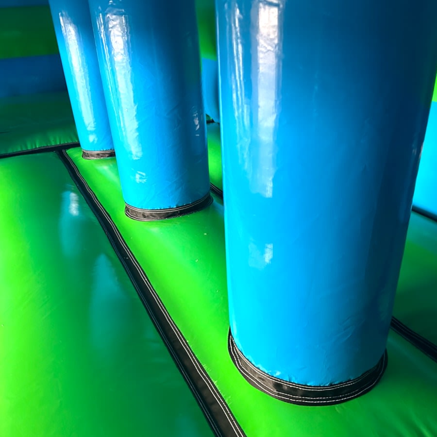 With a large cartoon digitally printed theme, this fun run is designed with a large assault like/ bouncing area but also with a slide so it gives the users that little extra excitement of a slide, biff and bash pillows with some foam block square steps at the end to help get the users to the top of the slide.Combine this with the soft play den on the main bouncing area and your on to a winner!