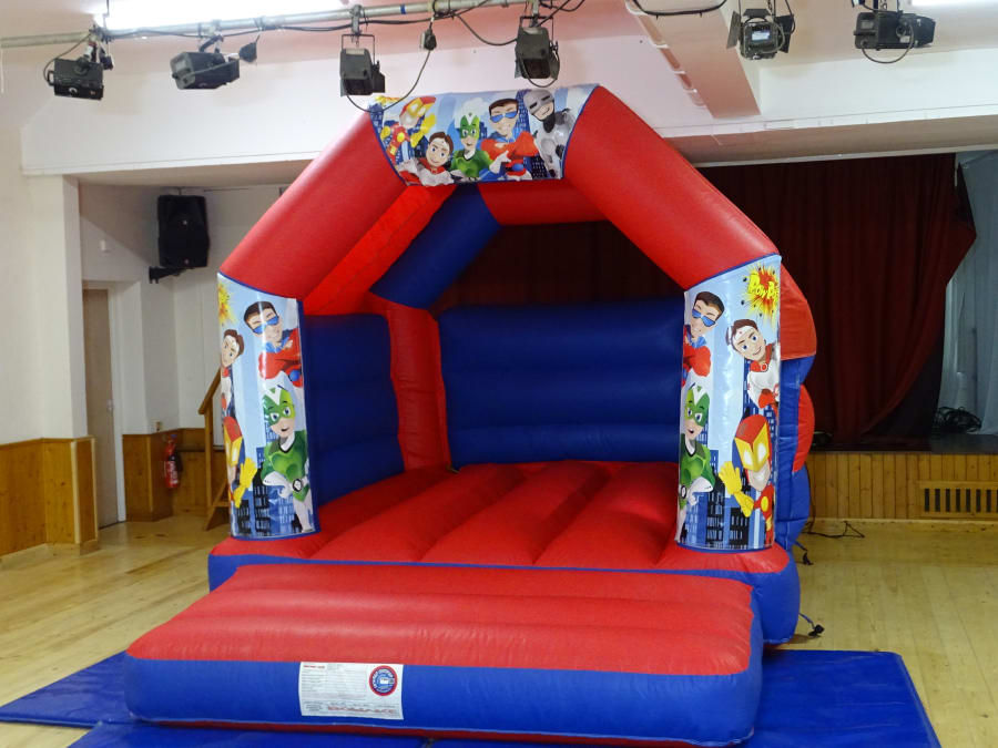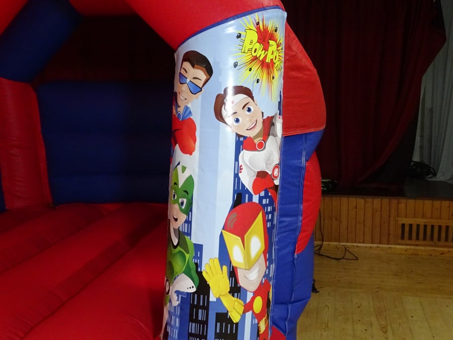 Transform any gathering into a super-powered adventure with our Super Hero Bouncy Castle. Perfectly designed for both indoor and outdoor party settings, this castle is a show-stopper at village halls, garden parties, and more. Measuring a generous 15ft x 11ft x 10ft high, it's built to accommodate a large party with a mixed age range of kids. With a shower cover included, this bouncy castle is ready to weather any unexpected drizzles, ensuring the fun never stops! ⛅
