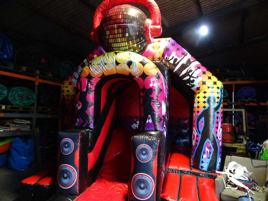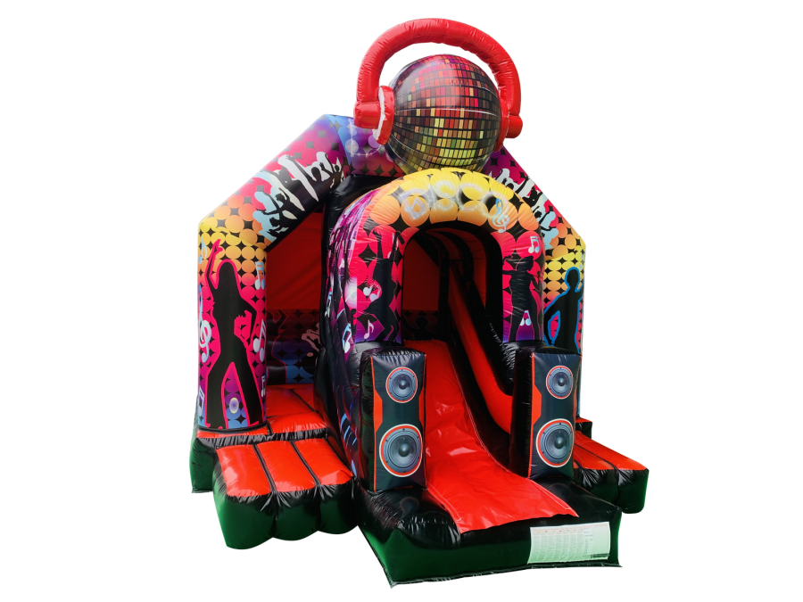 Welcome to "Disco 3D Bounce and Slide with Disco Ball " Brand new in stock and ready to hire ... A fantastic large castle with front slide, 3D artwork. Ready for a great party complete with built in disco and flashing light..Large bouncing area with two entrances with large front slide in middle complete with shower cover fitted. Great for a large party for all ages. Wedding / Birthday/ Family BBQ/ Special Occassion / School events ..ect