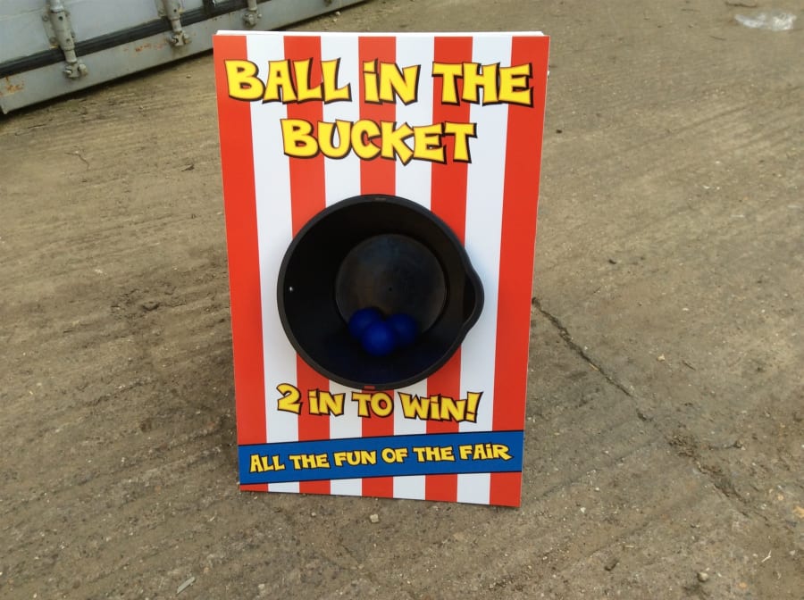 Ball in the bucket is a traditional fairground classic and a great game for all ages, perfect attraction for all fayres, fetes, fundraising, fun days, schools, home events, corporate, community events, parties....