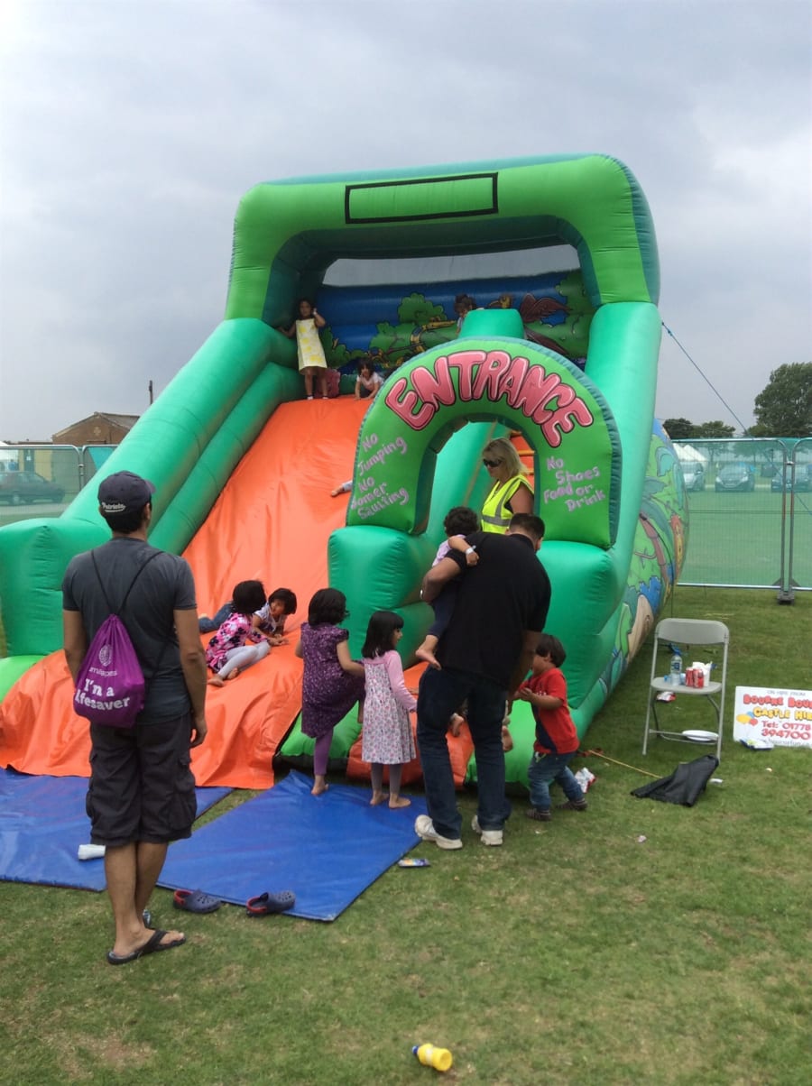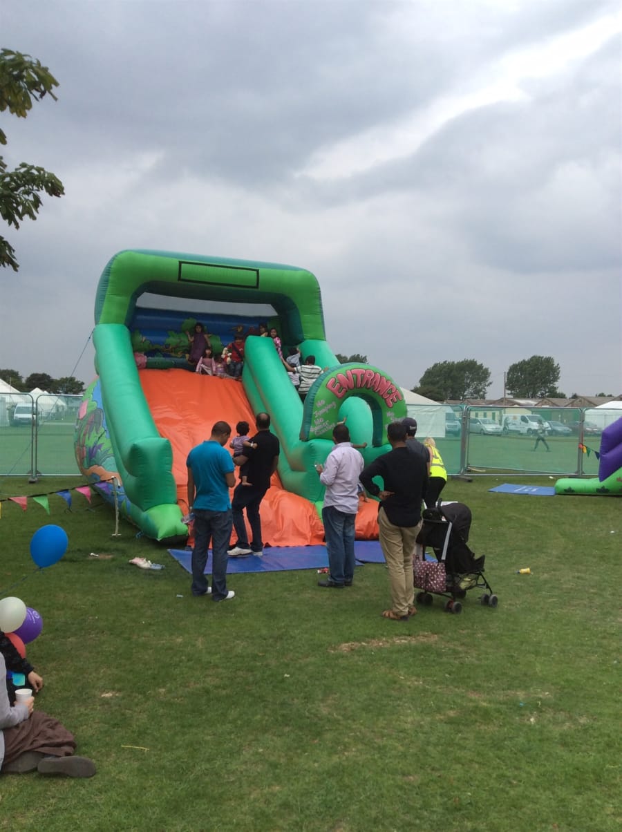 🌿 The Green Jungle diva slide stands at an impressive 16ft high and 20ft long, making it a perfect addition to any event. Suitable for school fetes, street parties, birthday celebrations, and summer barbecues, this slide is a hit with both kids and adults.