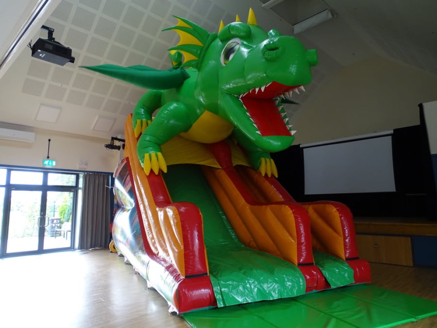 Make no mistake this slide is BIG ..A one off ...Please see attached video ...A fantastic slide with awesome art work to the slides ..A big slide with soft foam block steps to the belly of dragon with a large wide supper slide down ..This slide is perfect for a large kids party that just want the next level of hire ..wanting something different ...This will blow your mind..kids will love this guaranteed ..Not your normal hire ..