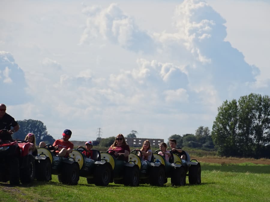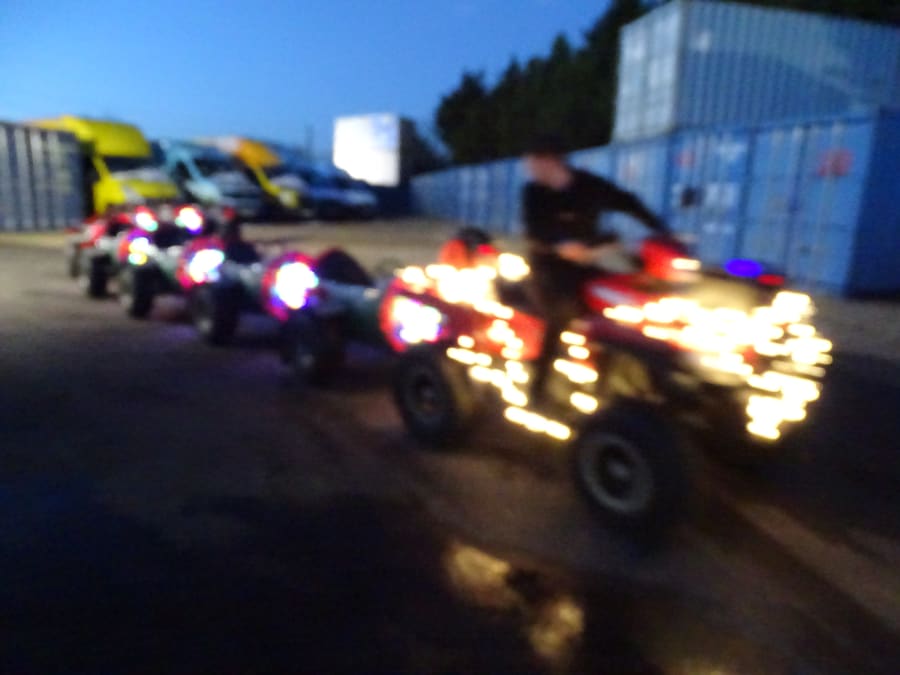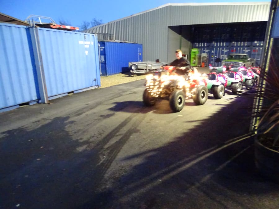 Quad bike is road registered so we can cut across streets and most hard standing areas.